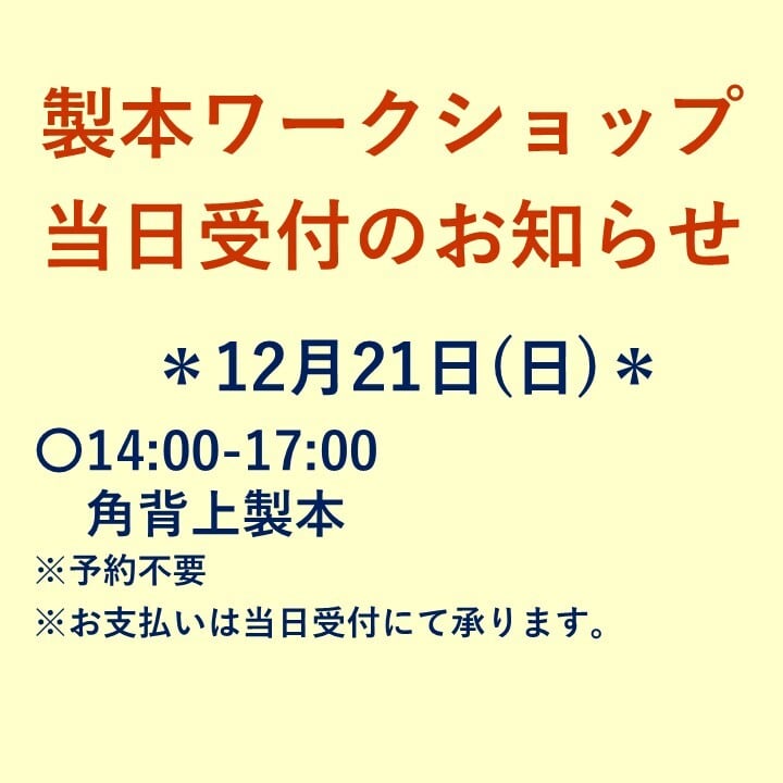 〇製本ワークショップのお申込・ご入金(現金のみ)は、当日会場で承ります。